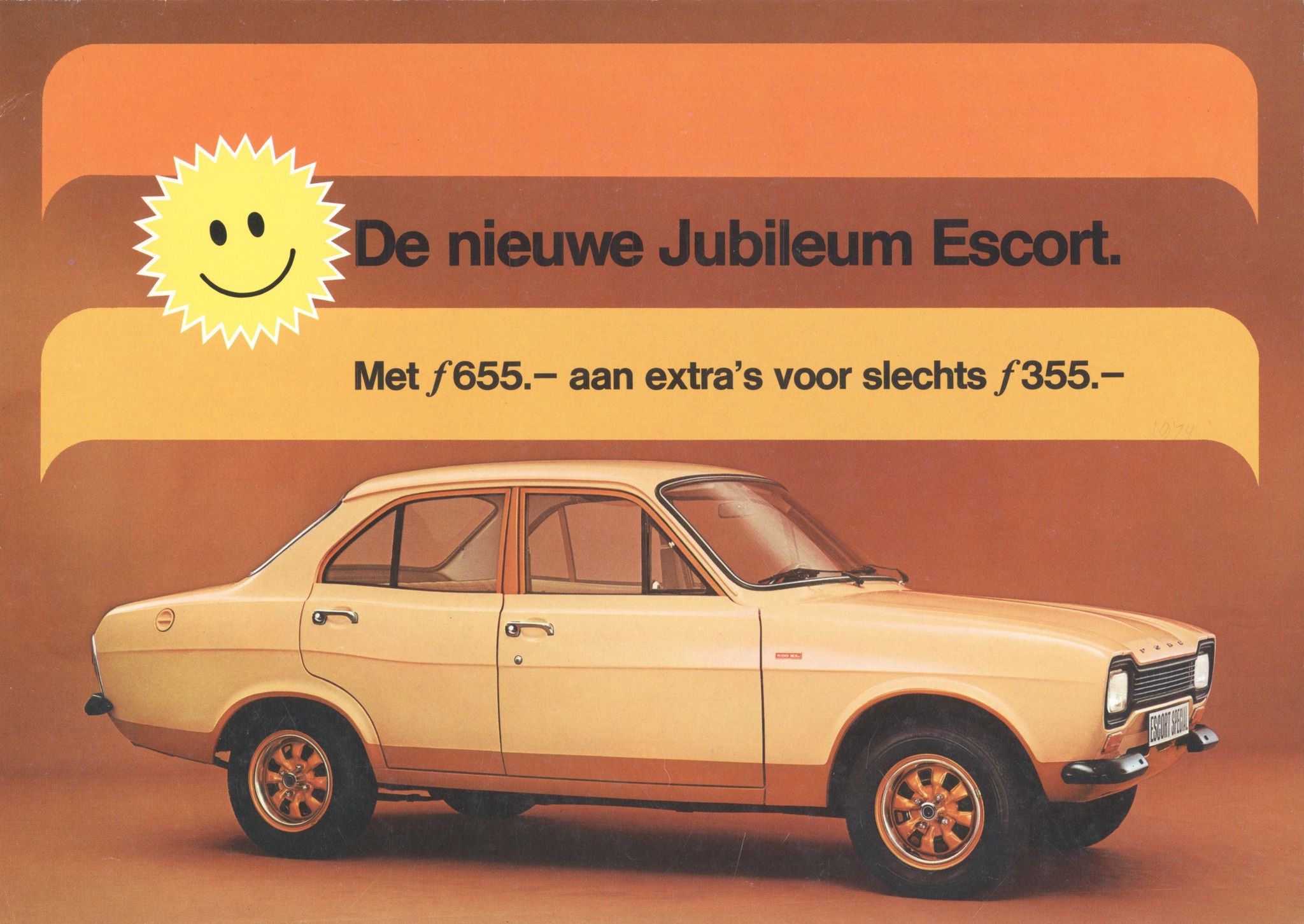 Ford Escort Mk1 Sunshine (often referred to as the « Jubilee » or « Jubileum » edition in some markets) is a rare, special edition of the Mk1 Escort, with only 500 units produced.